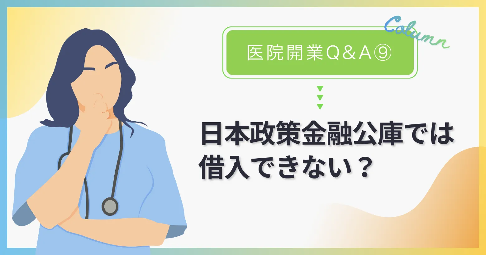 Q:日本政策金融公庫は医院の開業資金は対象外と聞きましたが?