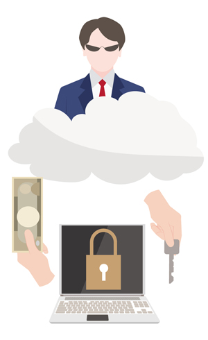 ランサムウェアというプログラムに感染すると、まず、端末に保存しているデータが暗号化され、使えなくなってしまいます。