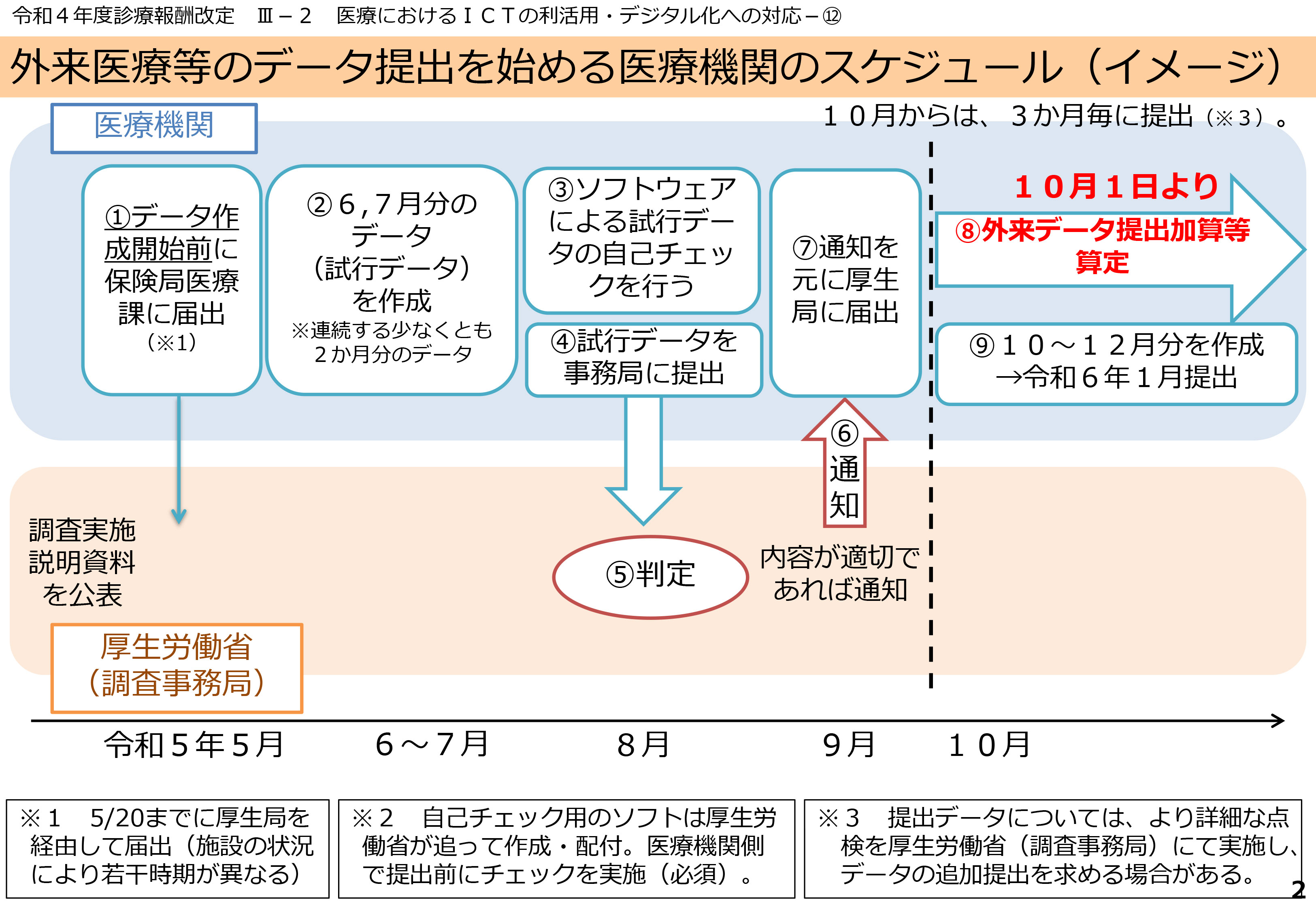 そのなかで、外来においてもデータ提出加算が新設され、2023年10月から算定が開始される見込みとなっております。