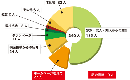以下は、あるクリニック様の1か月の新規来院者を対象に行ったアンケート結果です。
